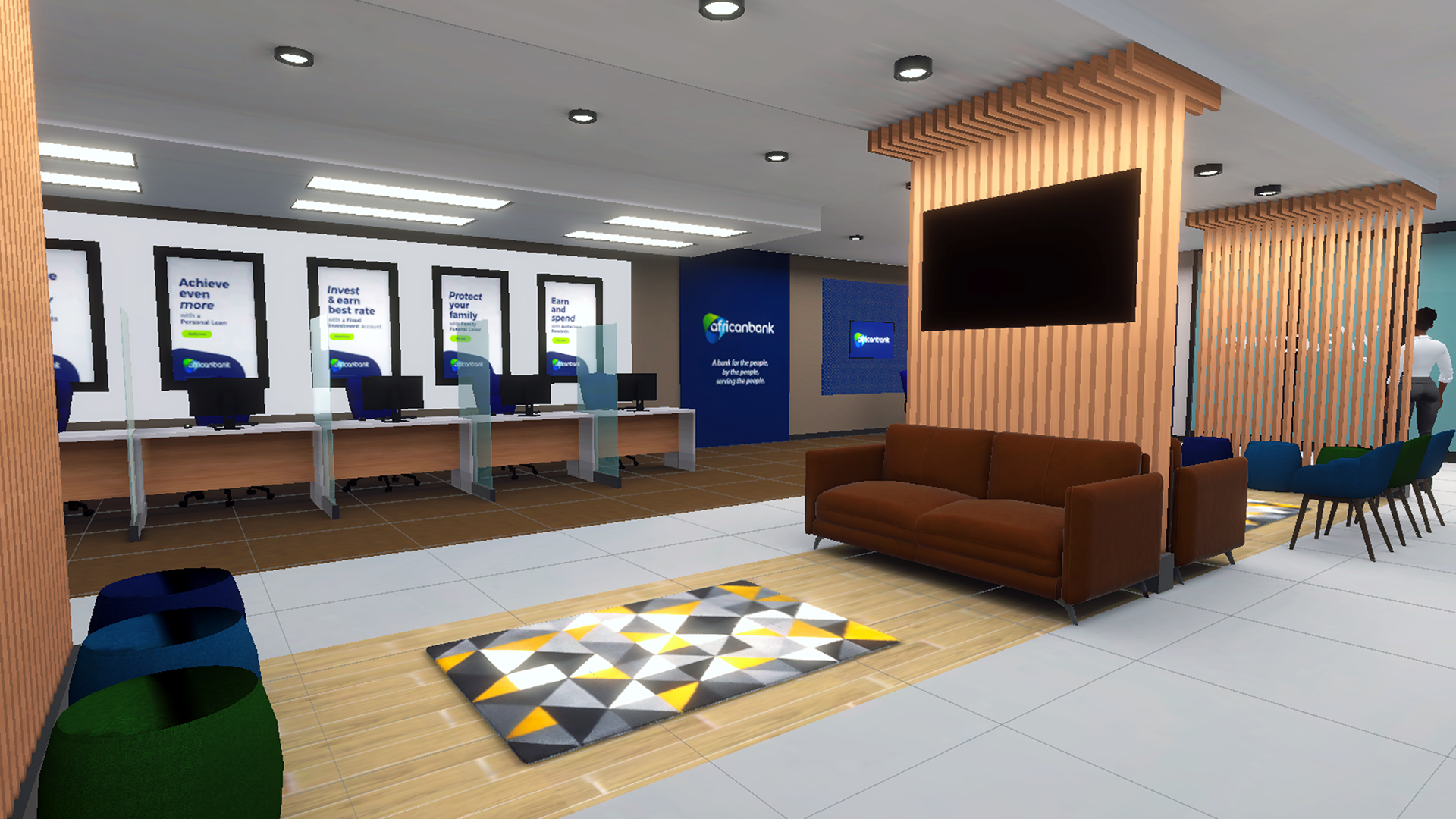 Within the virtual bank, users can explore and learn more about African Bank through strategically placed posters and marketing videos. These multimedia elements provide valuable insights into the bank’s services and products, keeping users informed and engaged.