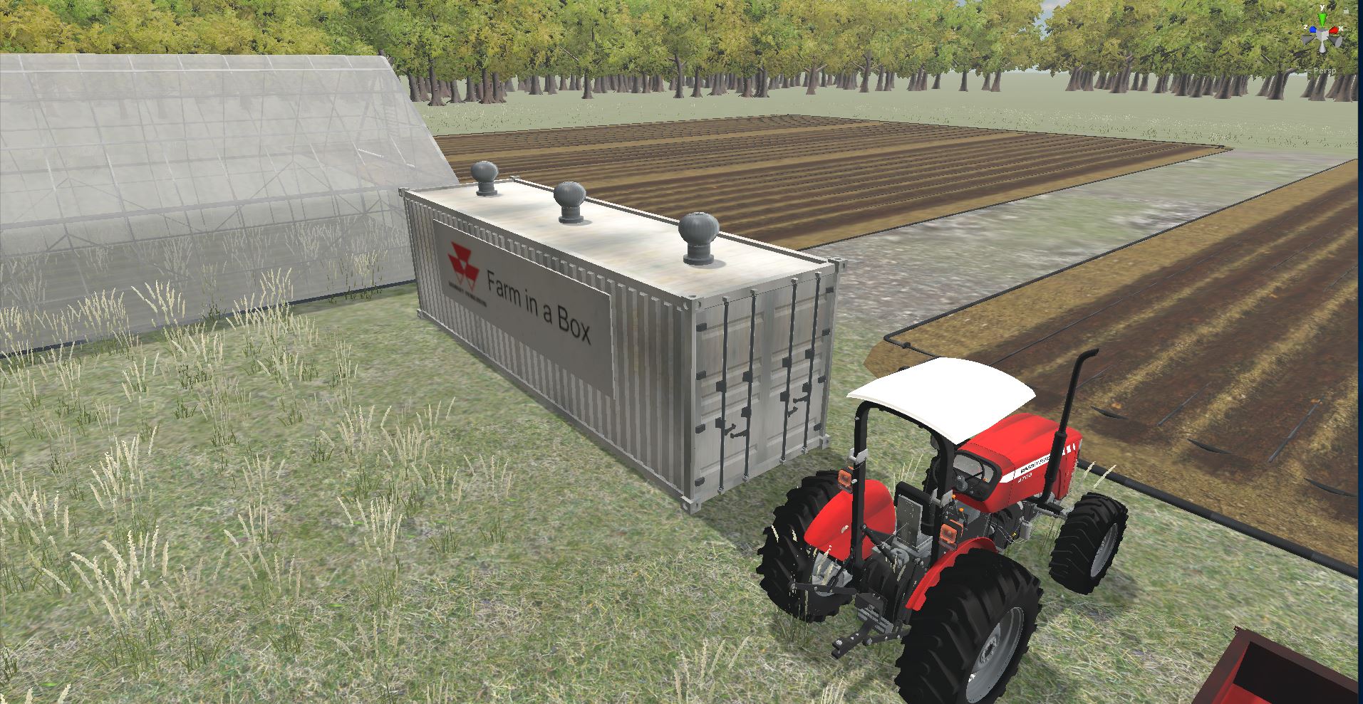 Above you can see some of the implements and the Massey Ferguson tractor that we have modeled from scratch to form part of the Farm in the Box concept. The Massey Ferguson tractor was modeled on the 4708 Massey Ferguson tractor that comes with the Farm in a Box concept and was exactly modeled on the actual tractor. We created the complete experience in 14 days.